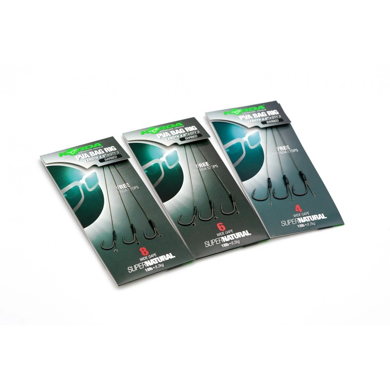 Korda PVA Bag Rigs 4.5" Pack Of 3 18lb Barbed or Barbless: Size 8 Micro-Barbed