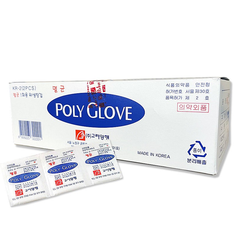 Korea Corporation Sterilized Poly Glove Embossed Sanitary Gloves 200 sheets M 2 pack KR-2 / 고려양행 멸균 폴리글러브 엠보싱 위생 장갑 200매 M 2매포장 KR-2