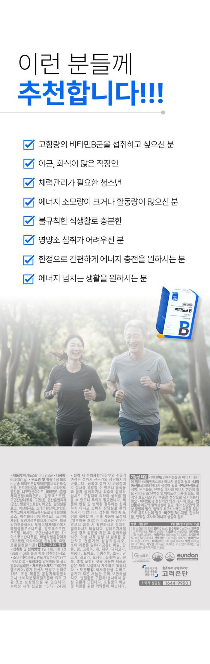 Korea Eundan Megadose B Vitamin B Complex 60 tablets x 1 (33306030) / 고려은단 메가도스B 비타민B군 컴플렉스 60정 x 1개 (33306030)
