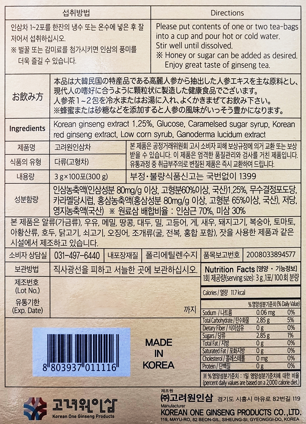 Korea One Ginseng Ginseng Charger 3g x