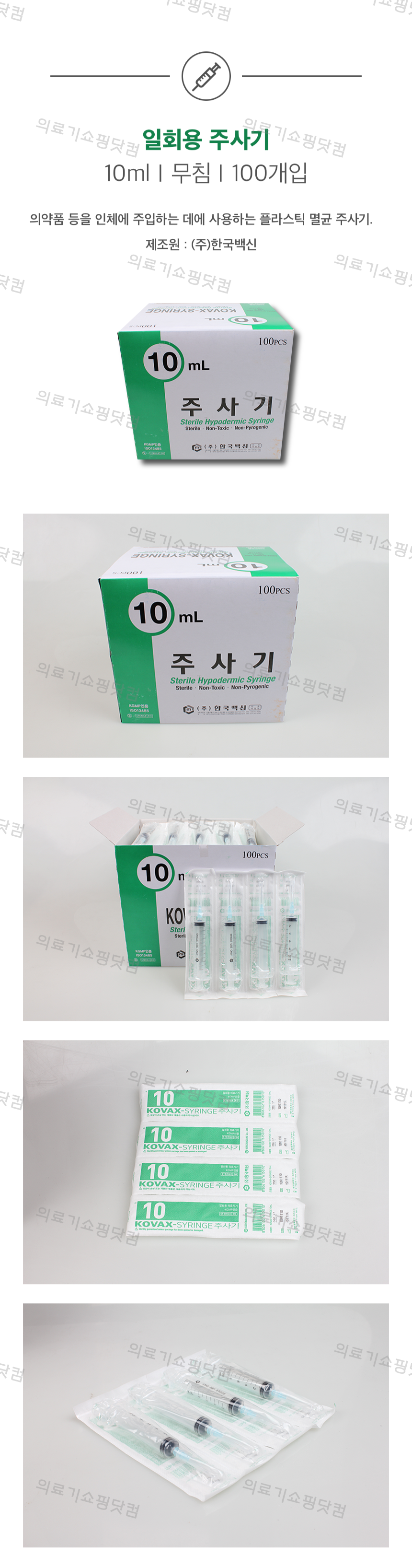 Korea Vaccine) Disposable syringe 10ml / needle-free / 100 pieces / 한국백신) 일회용주사기 10ml / 무침 / 100개입
