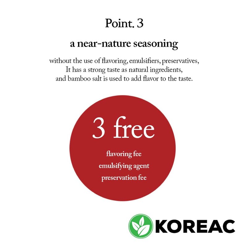 • Natural Seasoning No artificial flavors, emulsifiers, or preservatives are used. Instead, bamboo salt enhances the natural taste.