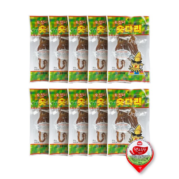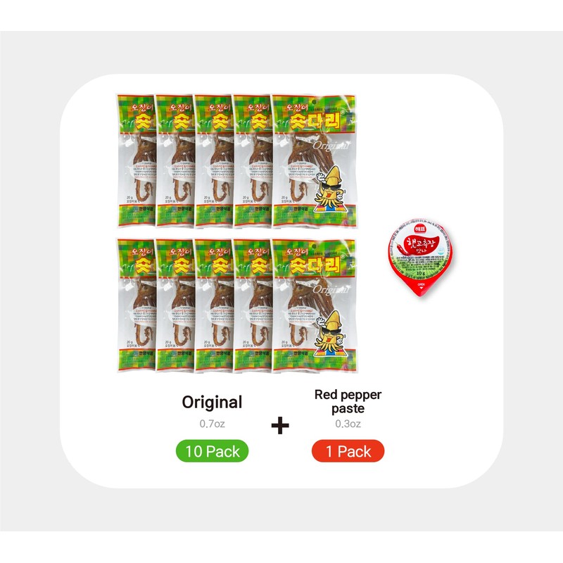 Korean Food Dried Squid Legs Snack (Original 20g X 10) + Red pepper paste 10g