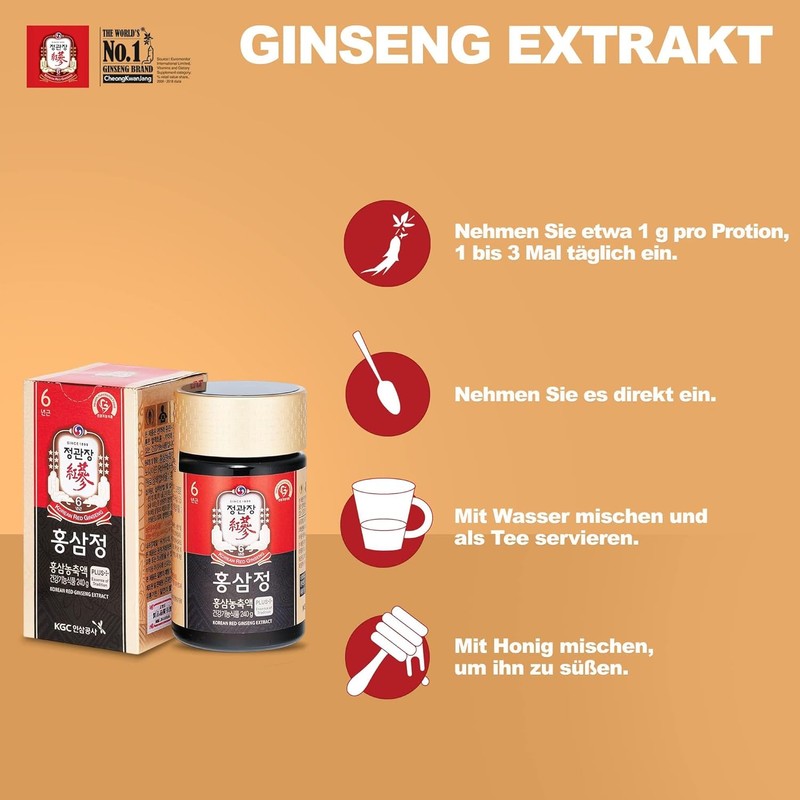 - No.1 GINSENG BRAND IN THE WORLD : When it comes to ginseng, don't settle for unknown online brands. KGC (JungKwanJang) has been the world's top brand for over 120 years. We've perfected the Korean Red Ginseng creation process from soil cultivation to production to bring you the finest product. Our expert ginseng researchers meticulously select and use only the best ginseng roots for production
