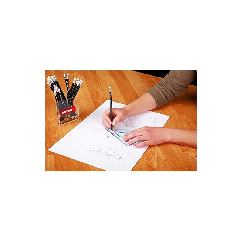 Kores - Graphite Pencils Set - Grafitos Pencils, HB, Soft, Triangular - Drawing Pencils, HB Pencils with Rubber, HB Pencils, Pencil Set, Art Supplies - Pack of 4 Pencils with Rubber