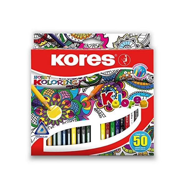 Kores Kolores Hobby Coloured Pencils, Triangular (Box of 50 Assorted Colours), BB93350