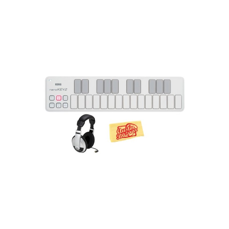 Korg nanoKEY2 Slim-Line USB Keyboard Bundle with Headphones and Polishing Cloth - White