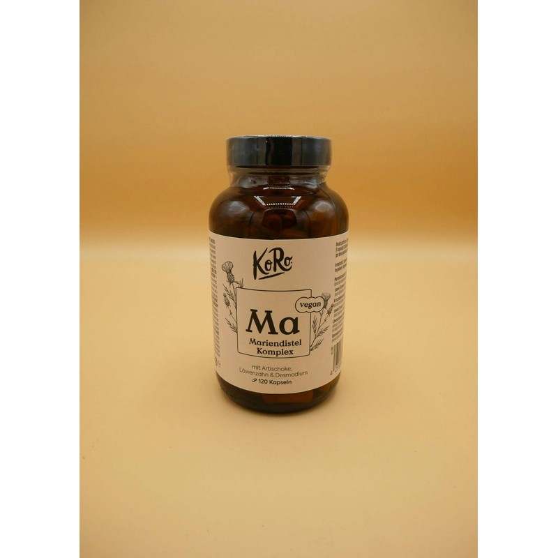 - Milk thistle: the capsules consist of 80% of the plant active ingredient silymarin. In the complex capsules from KoRo the active ingredient works with dandelion, desmodium and artichoke extract. The compound contained in milk thistle is known for its potential positive properties.