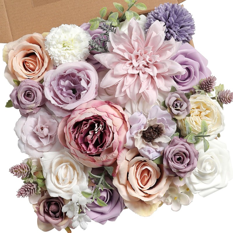 Koroni Flowers Purple Artificial Flowers Combo Box Set Fake Flowers Bulk Flower Leaf with Stems for DIY Wedding Bouquets Centerpieces Baby Shower Party Home Decorations