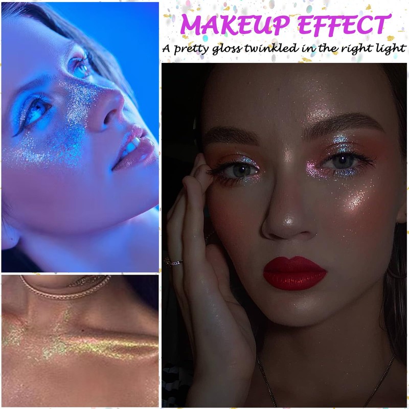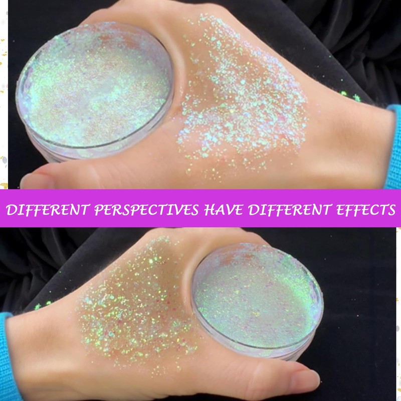 - 【Schillerndes Funkeln und Strahlen】: Dieses Gel ist mit fein gemahlenem Glitzer vollgepackt und lässt Sie von Kopf bis Fuß schimmern. Perfekt als Haarglitzerspray, Gesichtsglitzer oder Körperglitzer – ideal für Festivals oder Partys!