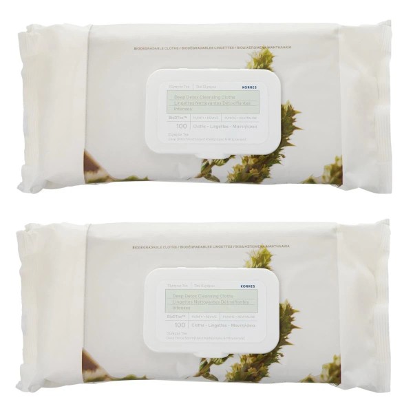 2 X Korres Olympus Tea Deep Detox Cleansing Cloths Pack 100 Count Sealed.