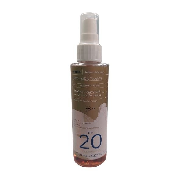 Korres Aegean Bronze Bronzing Dry Touch Oil SPF20 is a dry sunscreen oil with a silky texture, designed for an intense and even tan.