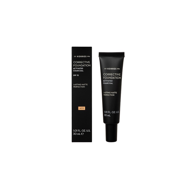 Korres Corrective Foundation SPF15 Corrective Make-up ACF3 with Activated Carbon To Cover Imperfections & Matte Effect, 30ml