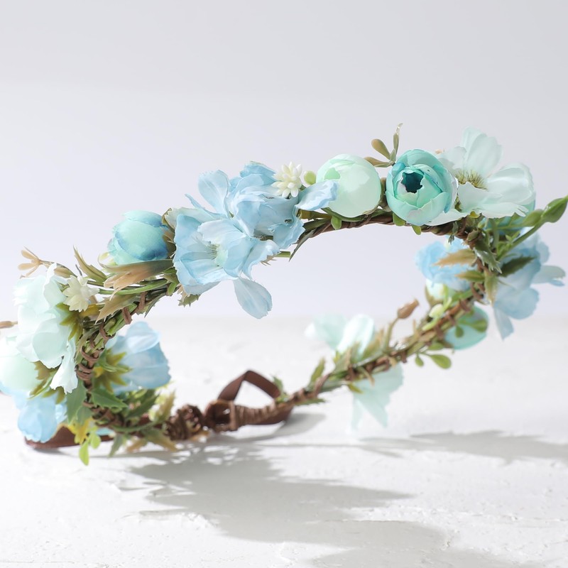 KorViSHOW Blue Flower Crown Headband - Handmade Fairy Floral Headpiece with Artificial Rose Boho Bridal Flower Crown for Women Girls Maternity Renaissance Weeding Festivals Birthday Party Headdress