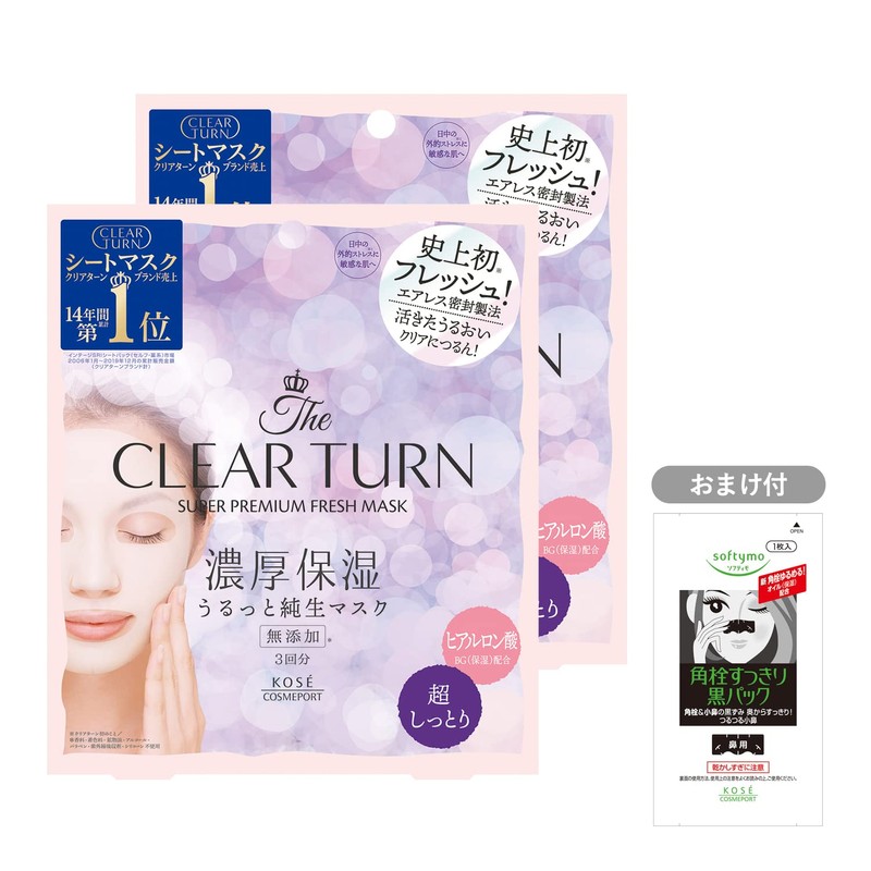 Kose Clear Turn Premium Fresh Mask (Ultra Moisturized) Face Pack 3 x 2 Boxes + 1 Nose Plug Pack with Sample