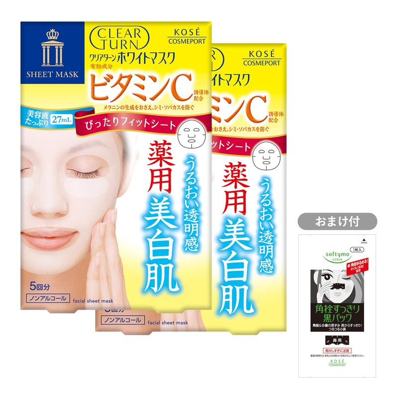 KOSE Clear Turn White Mask, VC (Vitamin C), 5 Pieces, 2 Pack with gifts