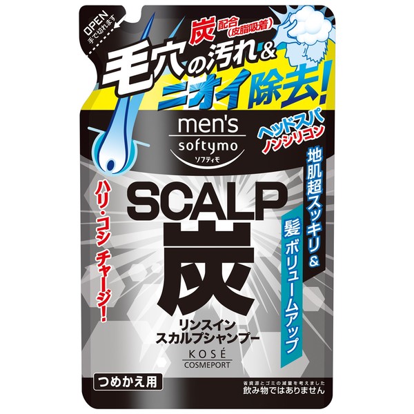 Kose Men's Softymo Rinse In Scalp Shampoo (Charcoal) Refill, 13.5 fl oz (400 ml)