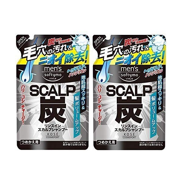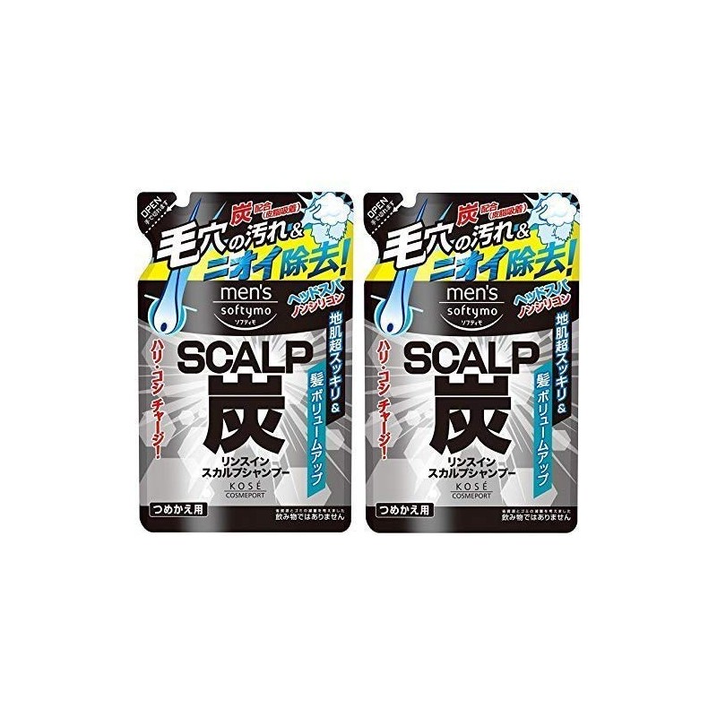 Kose Men's Softymo Rinse In Scalp Shampoo (Charcoal) Refill, 13.5 fl oz (400 ml) x 2
