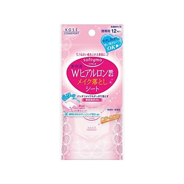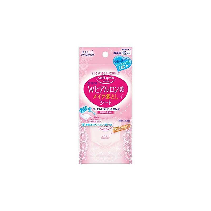 KOSE Softymo Makeup Remover Sheet (Hyaluronic Acid), Pack of 12