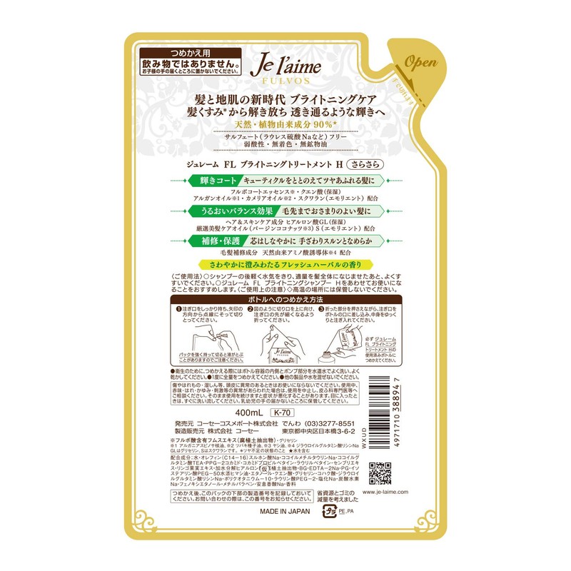 Kose zyure-mu FL buraitoningutori-tomento (Bright & Sleek) tumekae 400ml