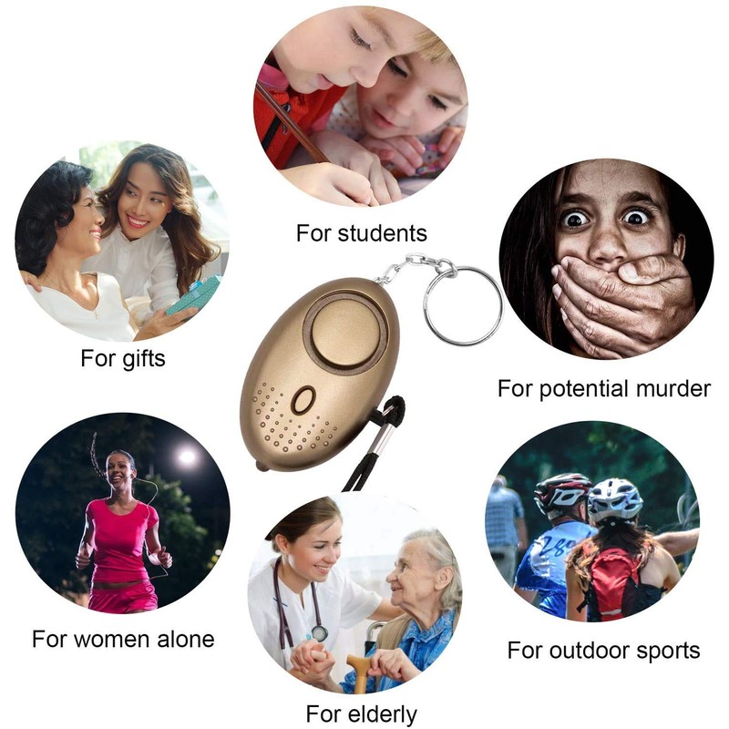 - 140db SAFESOUND PERSONAL ALARM: The emergency alarm can make a loud sound to draw attention to protect you from having an emergency even at distances as far as 606.9 ft. In addition, the sounds could last 50 minutes continuous ear-piercing alarm.
