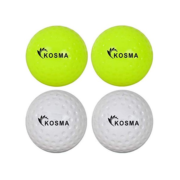 Kosma Pack of 4 Dimple Hockey Ball | Outdoor Sports Practice Training Balls – 2Pc Each of Fluorescent Yellow & White