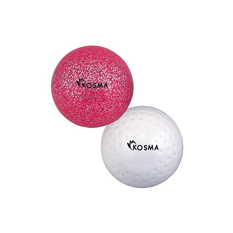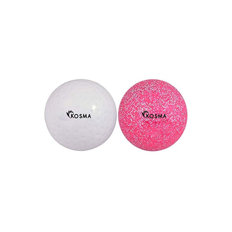 Kosma Set of 2 Dimple Hockey Balls | Outdoor Sports Practice Training Balls (White Dimple, Pink glitter)