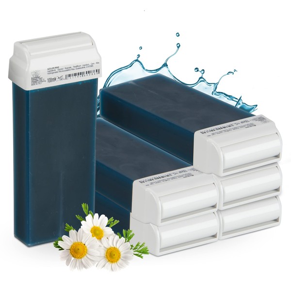 Kosmetex Azulen Wachspatronen Haarentfernung, Roll On Wax Roller, Warmwachspatronen, 6x 100 ml