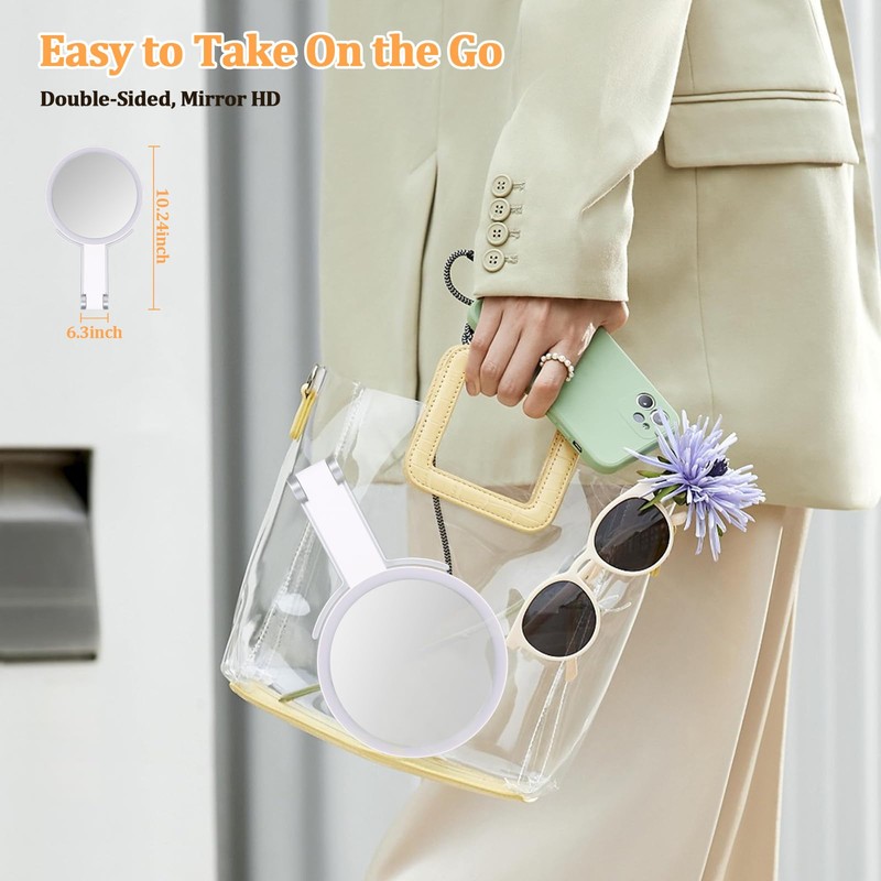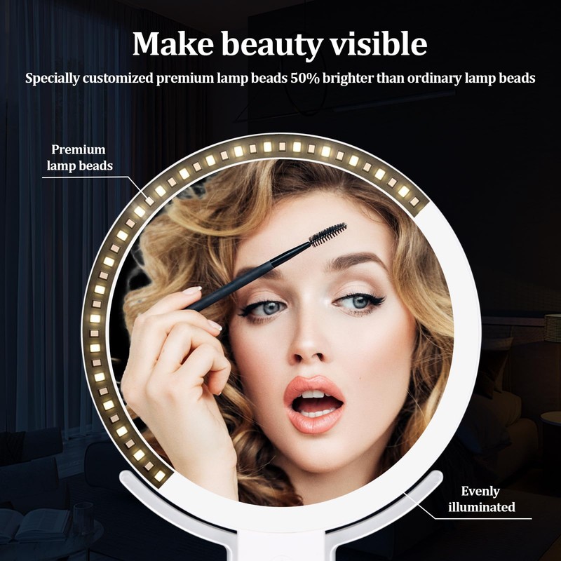Tragbarer und praktischer Makeup-Spiegel mit Licht: Das kompakte, faltbare Design macht es einfach, mit Ihnen unterwegs zu nehmen,.Die Handheld 10X Vergrößerung Seite für präzise Details wie Augenbrauen und Eyeliner, und regelmäßige Stand 1X Seite für allgemeine Make-up und tägliche Hautpflege auf Reisen.