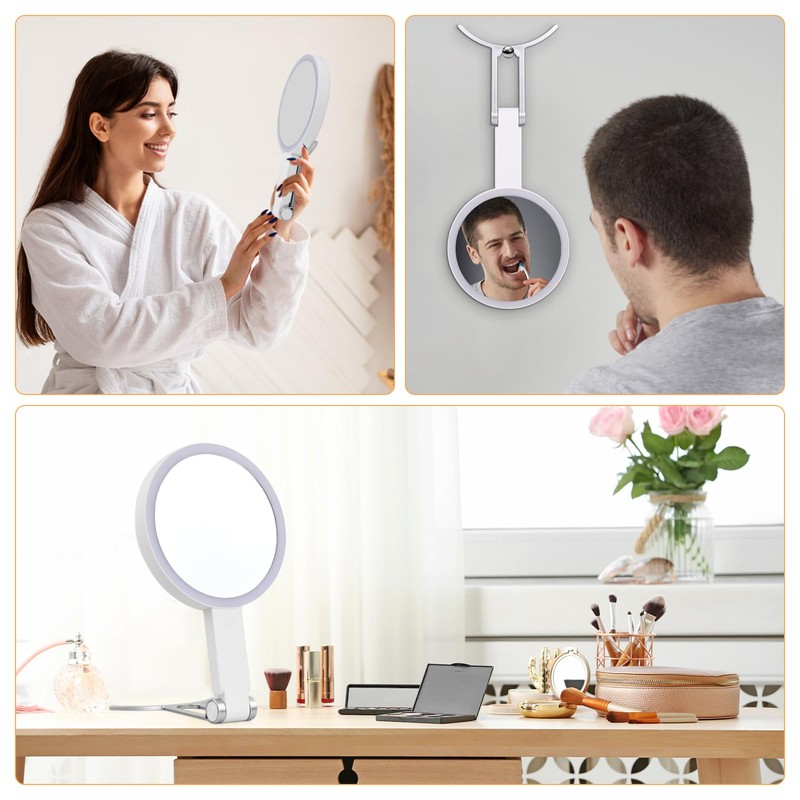 Überall gut aussehen: Mit 3 verschiedenen Lichteinstellungen, einstellbarer Helligkeit und einem um 350° klappbaren Ständer ist dieser beleuchtete Spiegel perfekt für den Einsatz im Badezimmer, Schlafzimmer, Schminktisch, beim Lesen, Live-Streaming oder unterwegs.