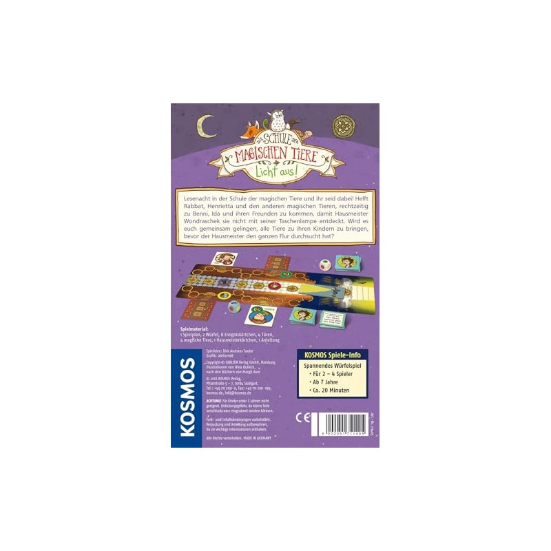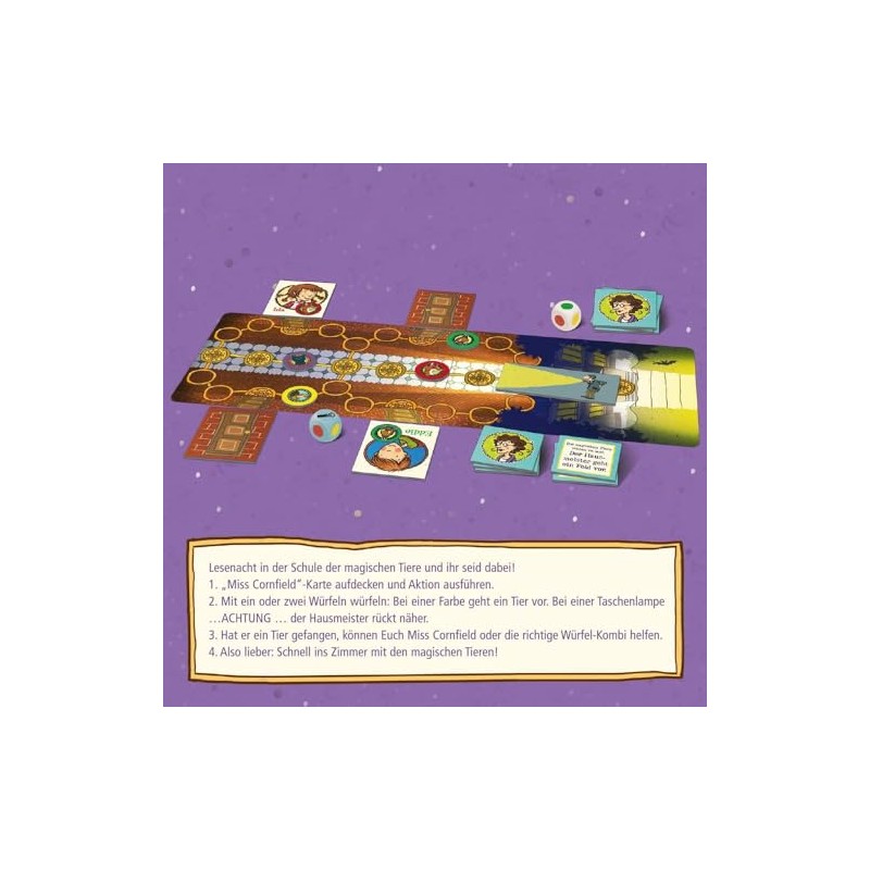 - Würfelspiel zur beliebten Buchserie „Die Schule der magischen Tiere“ von Margit Auer und Buchilllustrationen von Nina Dulleck