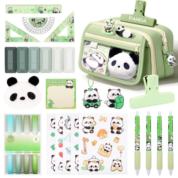 - Aesthetic pencil case stationery set: The school stuff contains 1 pencil case, 4 highlighters, 4 black neutral pens (0.5 mm), 6 correction tapes, 1 set of rulers (1 ruler, 2 triangles, 1 protractor), 1 set of sticky notes, 1 clips, 5 stickers, 1 pendant, 1 brooch, 1 doll. That's why this complete range of school supplies with pencil cases is therefore exceptionally extensive and is perfect for an aesthetic stationery set for school time.
