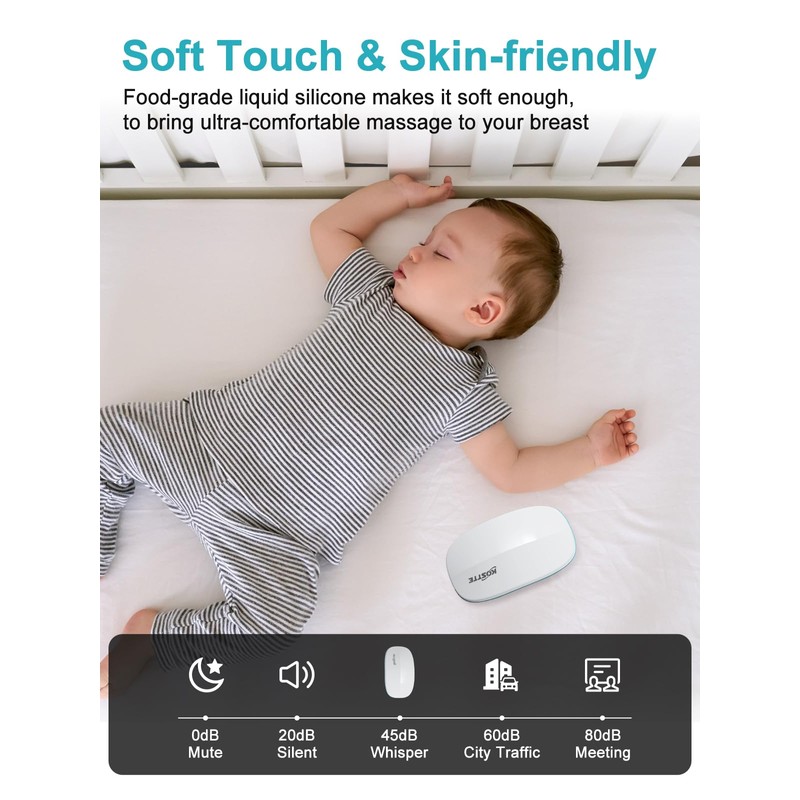• Massager & Heater. The ergonomic design fits comfortably in your hand, and can easily be tucked into a nursing bra for hands-free use. Less than 50dB, allows moms to use it at night and won't wake their baby at all