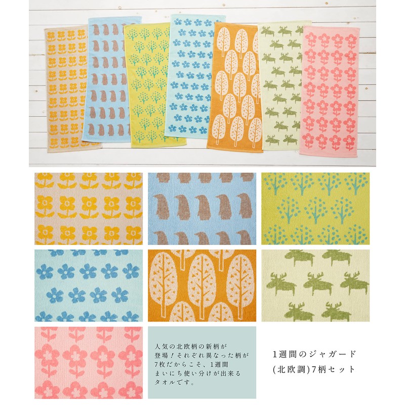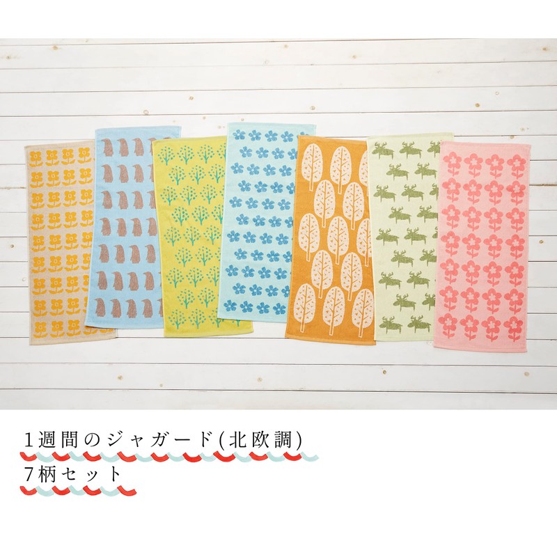Kosugizen Face Towel, 1 Week Jacquard Towel (Nordic Style), 13.4 x 31.5 inches (34 x 80 cm), Set of 7 Patterns