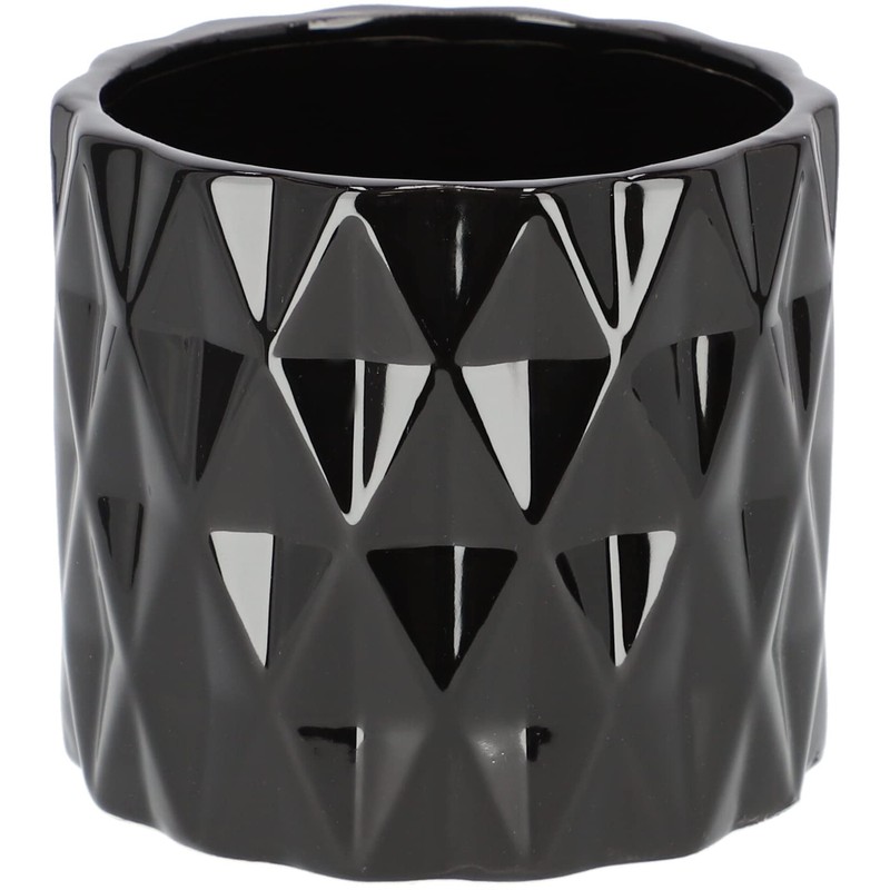KOTARBAU® Ceramic Flower Pot Planter Glazed Black Cylindrical Shape