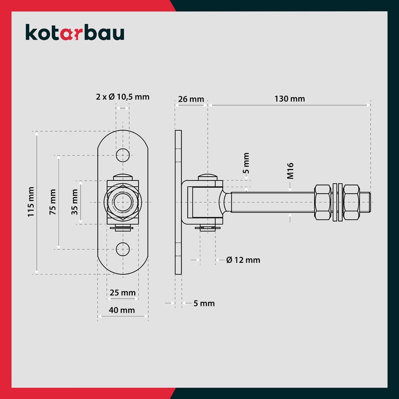 KOTARBAU® Gate Hinge Galvanised Thread M16 mm Adjustable with Screw-On Plate Gate Hinge Adjustable with Spring Clamp Hanging Hinges