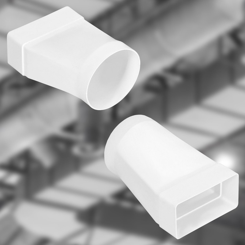 - Advantages: plastic connectors with variable cross section are characterised by a very affordable price. In addition, you can easily install these elements yourself and build an efficient ventilation system. Plastic connectors with variable cross section are also resistant to corrosion and the plastic materials used for their production are more resistant to weather and chemical influences.