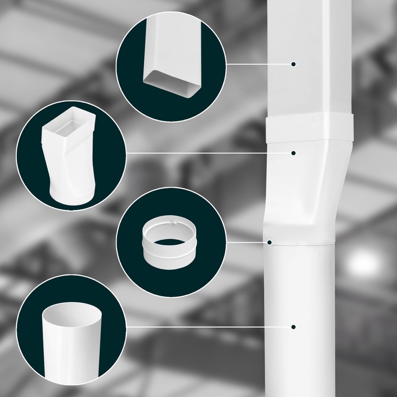- Material: plastic connectors with variable cross section are moisture resistant, which is important for any ventilation system. Plastic does not absorb water, corrode or rust, which means the connectors will last a long time. They are suitable for use in any building from homes and apartments to public facilities.