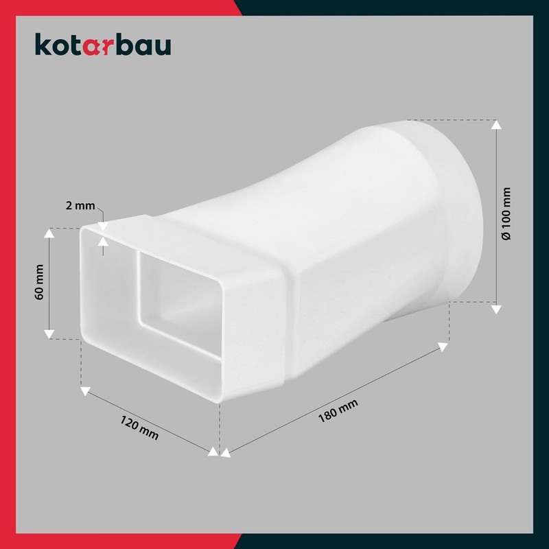 KOTARBAU® Rectangular Pipe Connector 60 x 120 mm for Round Pipe Diameter 100 mm Plastic Adapter Pipe Connector Exhaust Duct Reducer for Ventilation Systems White Flat Duct to Round Pipe Transition