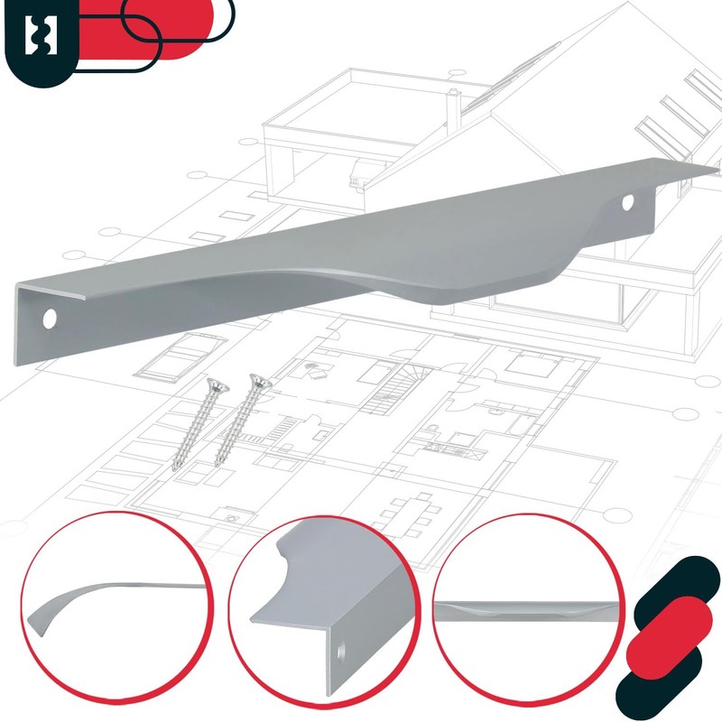 - Universal: the edge handle is an extremely versatile element that proves itself in different rooms. It fits perfectly into modern kitchens and gives them an elegant and stylish look. Even in the bathroom, where minimalism and functionality are crucial, it comes into its own. It can also be used in office and living room furniture.
