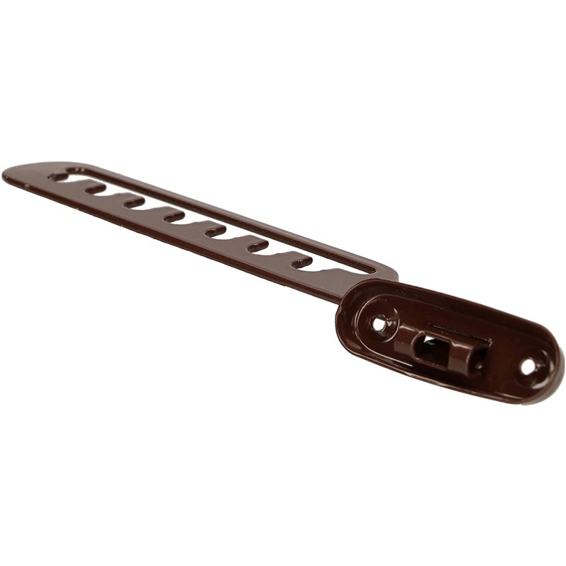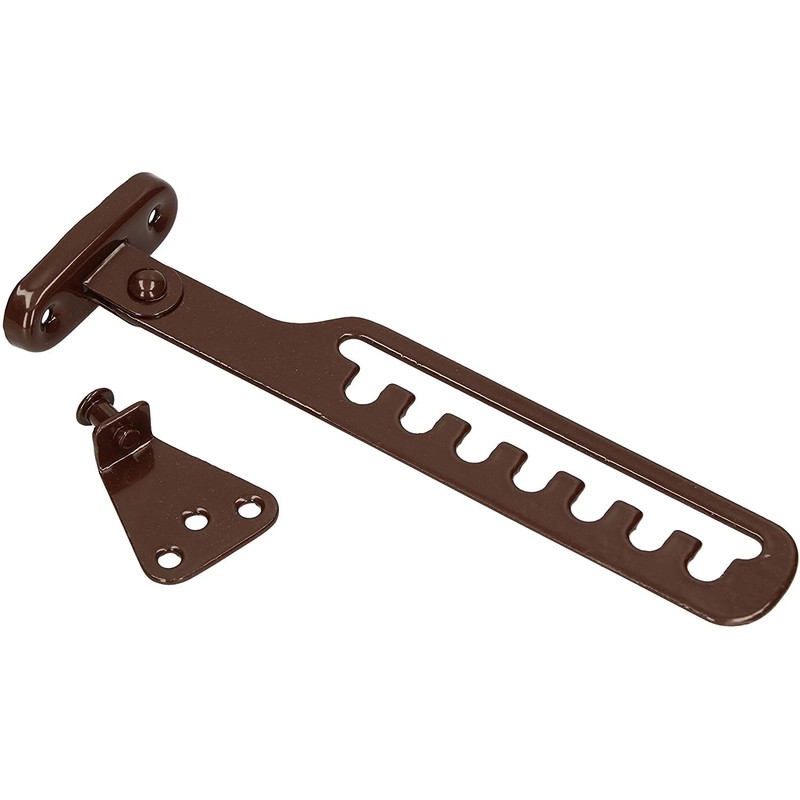 - SPECIFICATIONS - Window latch 19 cm powder coated - Total length of arm: 185 mm, width of arm: 32 mm, width of mounting plate: 58 mm, weight: 96 g, material: steel, coating: powder paint, colour: brown