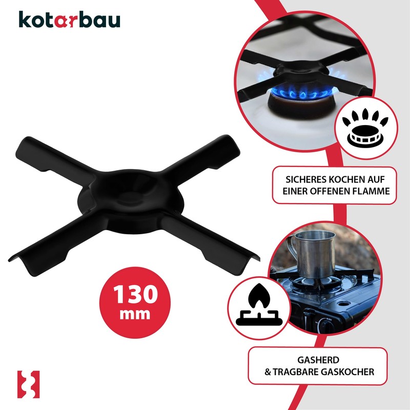 KOTARBAU® Set of 4 Enamelled Gas Stove Cross, 130 x 130 mm, Sheet Metal Gas Stove Attachment, Pot Holder for Gas Hobs, Gas Stove Attachment, Camping Stove Attachment Accessories, Gas Stove