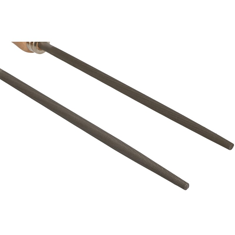 - Technical data - coarse metal file round - working length: 250 mm, diameter: 9 mm, total length: 370 mm, weight: 168 g, material file blade: carbon steel, wooden handle