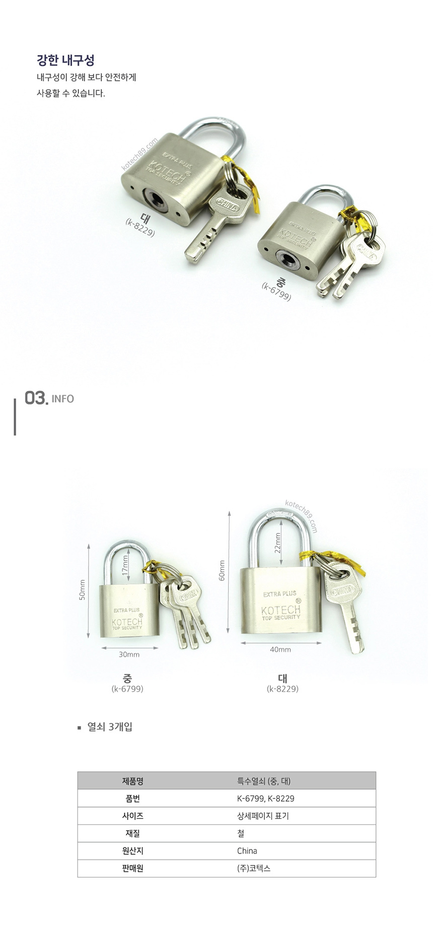 KOTECH Special Large Key 8229 / Padlock for Warehouse, Bathroom Door 2ea
