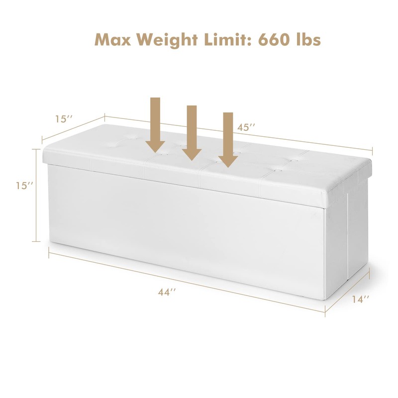 KOTEK 45 Inches Folding Storage Ottoman Bench, Storage Chest Footrest Stool with Faux Leather, Entryway Bench 45'' x 15'' x 15'' (White)