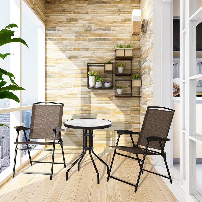 - 【Foldable & Comfortable Chairs】This bistro set comes with 2 folding chairs, it's easy to move and store when not in use, without taking up too much space. And the chairs are covered with breathable fabric, which features smooth touch, non-toxic, waterproof, and cool, comfortable for sitting.