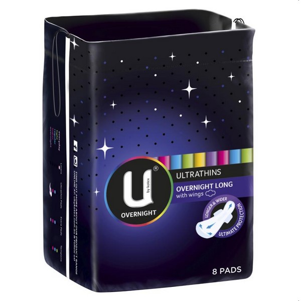 U by Kotex Overnight Long Ultra Thin Pads give you that extra level of protection while you sleep. U by Kotex® Overnight Long pads are even longer and wider than Overnight Regular pads, for ultimate overnight protection.