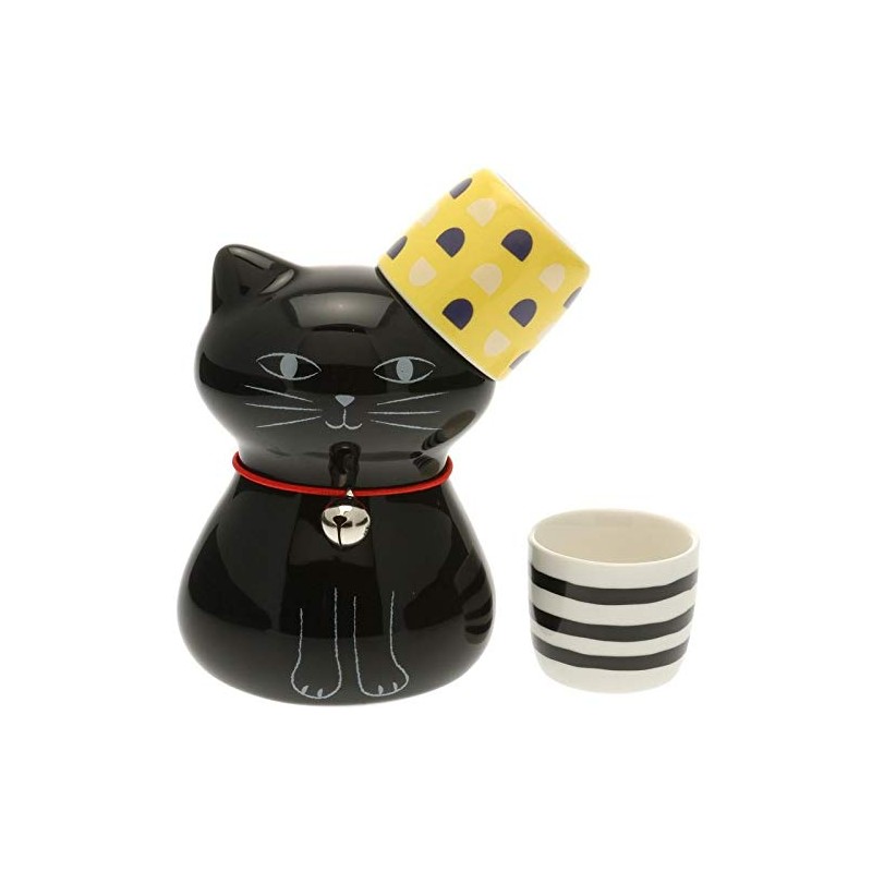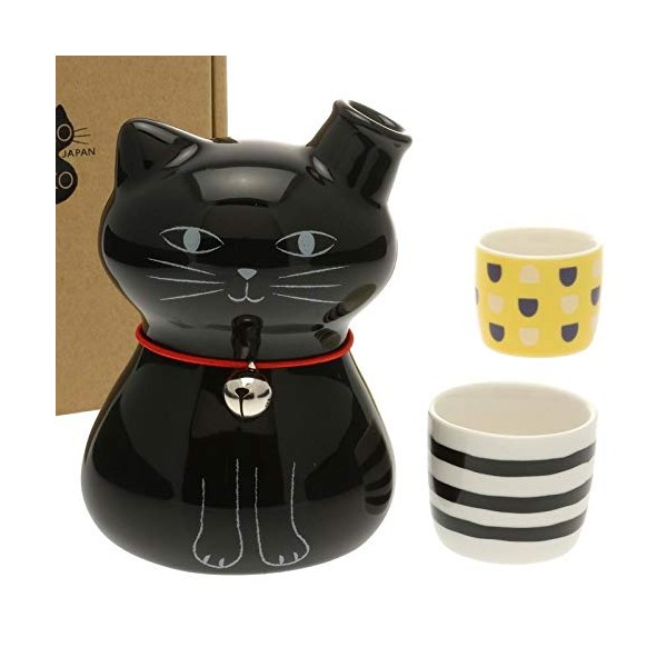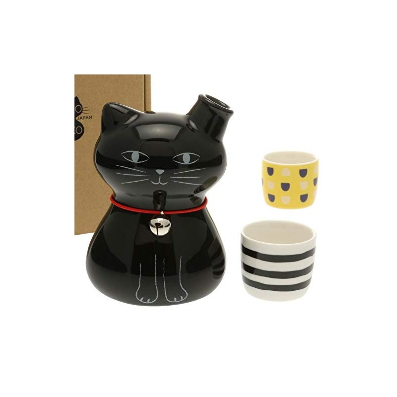 Kotobuki 120-603 Bohemian Black Cat Sake Set, Black