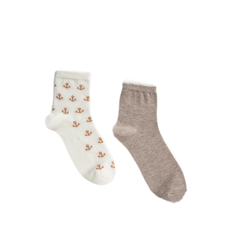 Koton Women's 2-Pack Socks Set Anchor Embroidered, ECRU(002)