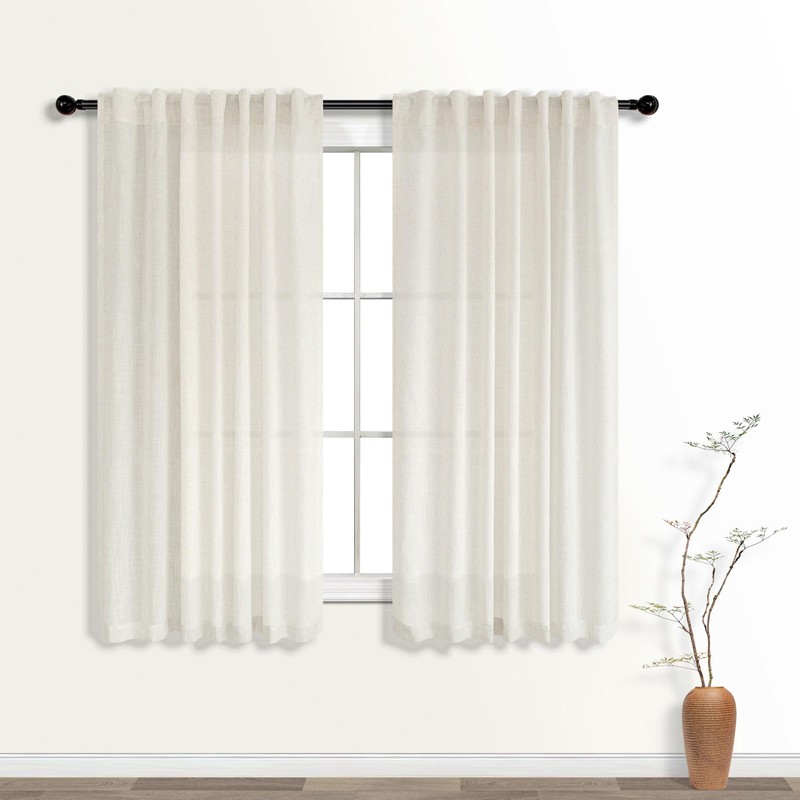 KOUFALL Bathroom Curtains Window Short,54 Inch Length Sheer Semi Privacy Linen Small Curtain for Bedroom 48 Windows,52x54 in Long,2 Panels Set